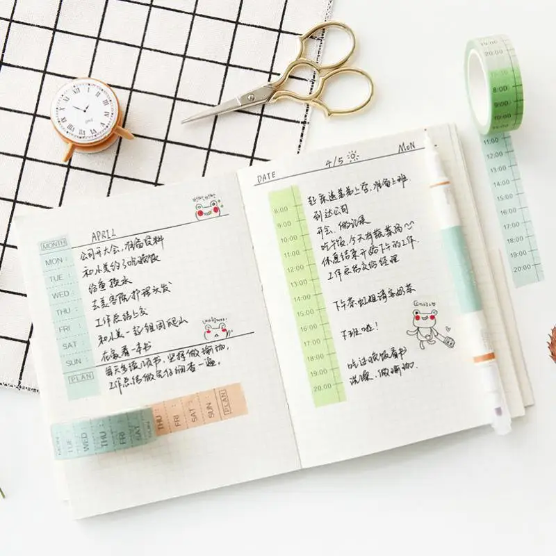 4pcs Japanese bullet journal supplies Weekly Date To Do Time Line Sticker Washi Tape Planner Notebook Diy Accessories Stationery : Click Here