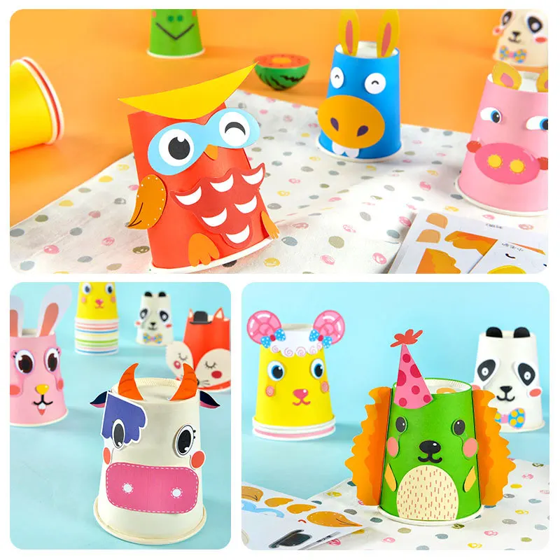 NEW DIY Children Crafts Toys Colorful Paper Cups With Cartoon Animal Creative Stickers Painting Kinderg